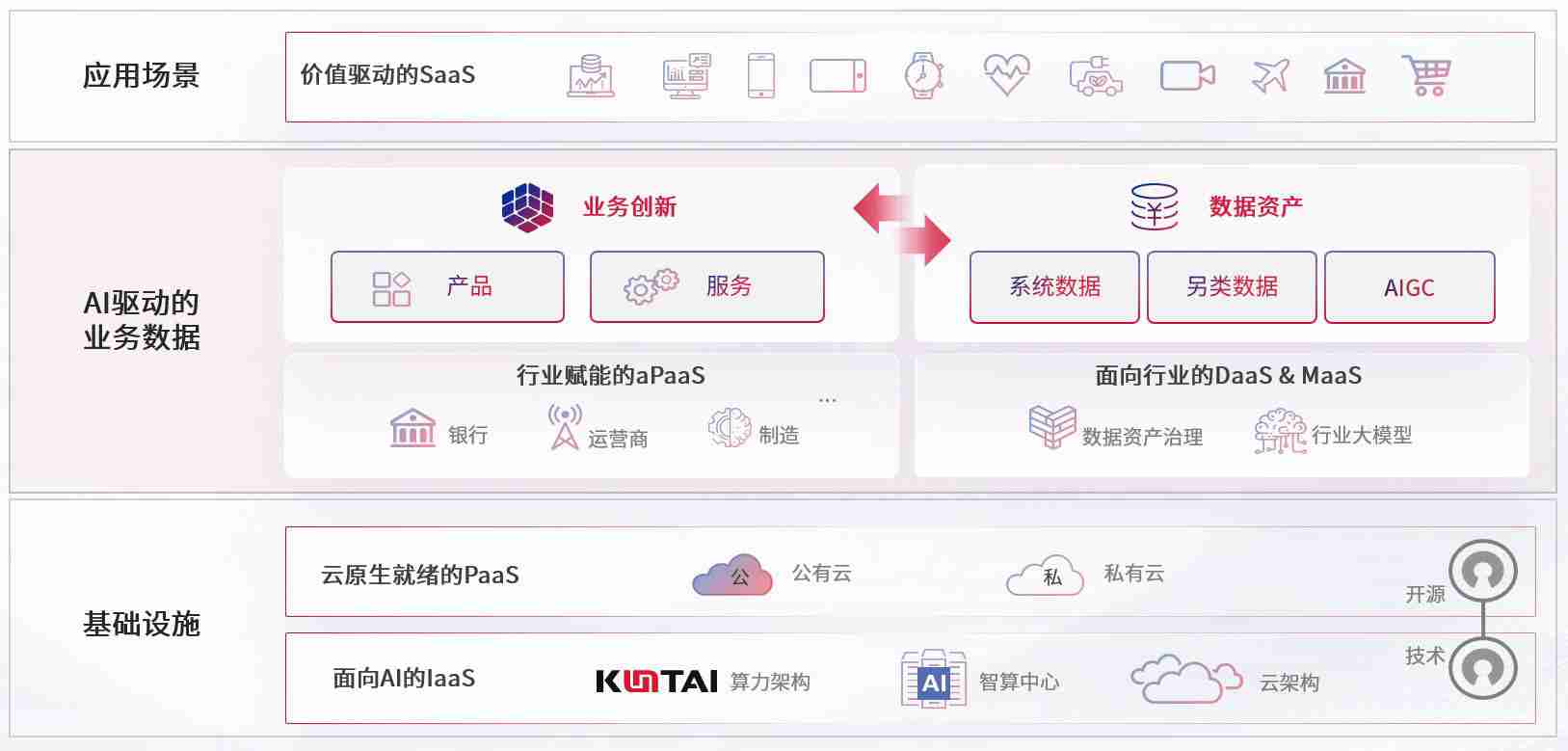 数字时代,,,,围绕企业数字化转型的关键要素,,尊龙集团数码开创性的提出数云融合战略和技术体系框架,,着力在云原生、、、、数字原生、、、、AI原生和信创产业上架构产品和服务能力,,为处在不同数字化转型阶段的快消零售、、、汽车、、、金融、、医疗、、、政企、、教育、、、、运营商等行业客户提供泛在的敏捷IT能力和融合的数据驱动能力,,,构建跨界融合创新的数字业务场景和新业务模式,,助力企业级客户建立面向未来的核心能力和竞争优势,,,全面推动社会的数字化、、、、智能化转型升级。。